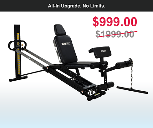 MOMO Pro is the all-in transformation—everything in Core plus a 6-level adjustable glideboard, the lower-body suite (leg extension/curl, bicep curl), and flat-bench mode for dumbbell work, with the Pilates kit included. Built heavier for pro-level control, Pro lets you move from strength to reformer-style flows and back, all on one platform. (Patent pending.)
