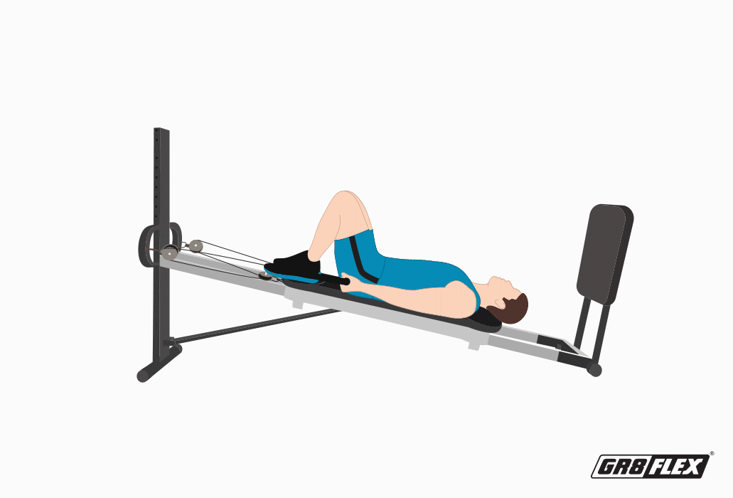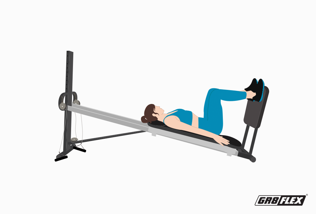Hook both feet using the strap attachment while laying on your back to the bench pad. Secure the pulley system so it does not slide. Begin the movement by lowering your body weight down until your legs are fully stretched. Pause for a brief movement before using your hamstring muscles to raise your bodyweight up to the point where you’ve reached maximum muscle contraction. Lower your bodyweight down slowly and stretch the muscle before going for another repetition.